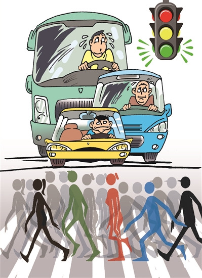 红灯停绿灯行、人车“各行其道”,是最基本的交通法规和安全常识。如今,数百人的队伍公然违反这样的规定,挑战公众的容忍度,实在不该。此前不少地方都开展过针对行人和非机动车闯红灯的专项治理行动,处罚多以批评教育和小额罚款为主,效果一直有限。这背后,还是不少人遵守交规的意识有待提高,同时一些违规之人确实没有受到相应的处罚。不管怎样,法不责众的心理要不得,对上述“组团违法”的人,更应及时亮剑,予以处理。否则,恐怕会有更多人“照方抓药”,不仅可能造成矛盾升级,而且可能带来更大的安全隐患和社会失序。李法明/图 弓长/文
