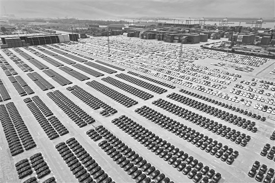 8月21日,南京,龙潭港整齐排列的汽车。7月,全国汽车企业出口29万辆,连创历史新高。