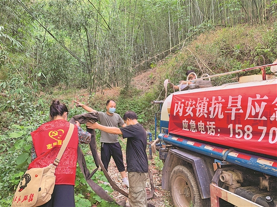 8月份以来,贵州持续晴热少雨,多地出现不同程度旱情。在旱情较为严重的遵义市、仁怀市等地,工会组织动员党员干部群众组成爱心志愿服务队,全力保障群众生活用水和农业生产用水。本报记者 李丰 摄