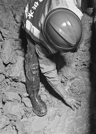 8月24日,在鼎城区江南大道一漏点,工作人员正在开展供水管网抢修工作。