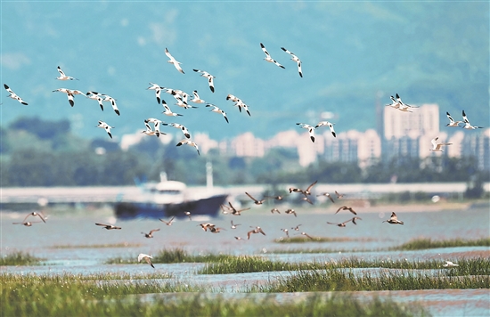 近日,位于福建福州的闽江河口湿地,迎来成群结队南飞迁徙的候鸟“先头部队”。