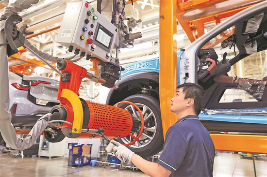 8月28日,在合肥经济技术开发区的一家新能源汽车生产企业,工人在整车生产线上作业。