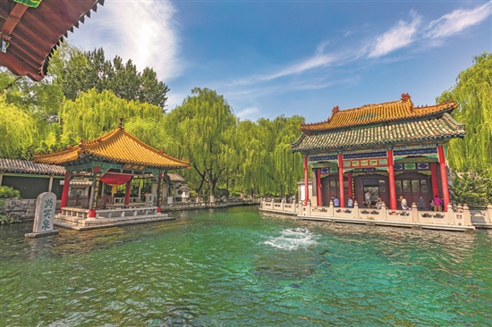8月31日,济南趵突泉吸引游人前来观赏。