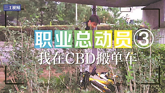 扫描二维码,观看工人日报融合报道《职业总动员③ | 我在CBD搬单车》