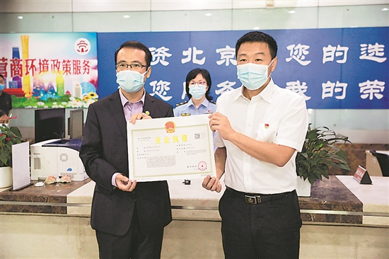 9月1日,北京市朝阳区市场监管局发出该市第一张使用市场主体登记确认制方式变更的营业执照。上午9时,注册在北京自贸试验区国际商务服务片区朝阳组团的“中世粮国际认证有限公司”,成为首家获得这一营业执照的企业。