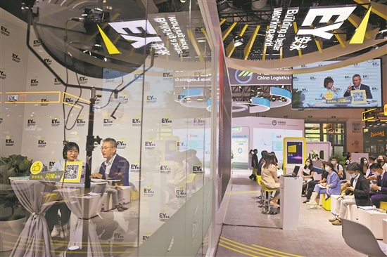9月2日,北京服贸会国家会议中心展区内,一家专注于审计、咨询、税务、战略与交易的服务机构正通过线上直播和线下分享会的形式介绍全球服务业务。