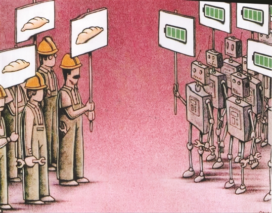 西方失业工人为取得劳动和生活权益,走上街头向当局示威、抗议。闲置的电器设备也有样学样,向垄断大亨冲去!