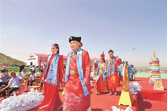 近日,在内蒙古乌海市的甘德尔山脚下,包银高铁甘德尔隧道的施工现场,中铁十局一公司第九届员工集体婚礼举行。当日,7对新人举办了一场蒙式婚礼。100多名包银高铁项目参建职工及新人家属共同见证了新人步入婚姻殿堂。