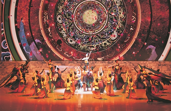 演员在开幕式文艺演出中表演芭蕾《敦煌·飞天》。