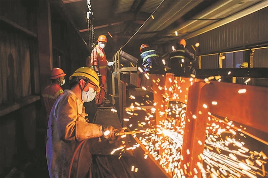 图为顾玖凌(前)与工友们在抢修设备。蒋晓东 摄