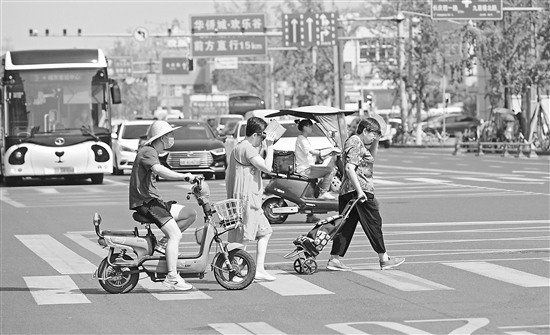 8月11日,成都市民头顶烈日通过金牛区交大路的一个路口。高寒 摄/视觉中国