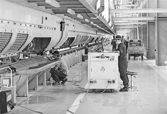 9月7日,工作人员在昆明动车所内对一列动车组列车进行检测。为保证今年中秋、国庆假期高铁动车健康上线运行,昆明车辆段昆明动车所对配属动车组制动装置等关键部位进行全面保养检修,近期平均每天检修动车组30组。新华社记者 陈欣波 摄