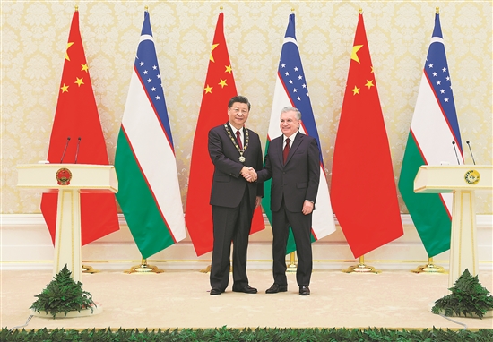 习近平接受乌兹别克斯坦总统米尔济约耶夫授予“最高友谊”勋章