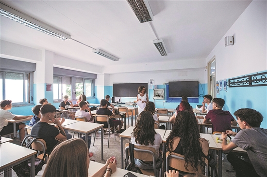 本周,意大利多地学校迎来开学日。图为学生在意大利罗马一所中学内上课。新华社发