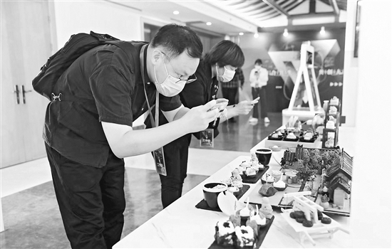 图为9月7日,2022“故宫以东”共创大会现场,观众正在拍摄展出的“故宫以东下午茶”系列。本报记者 刘金梦 摄