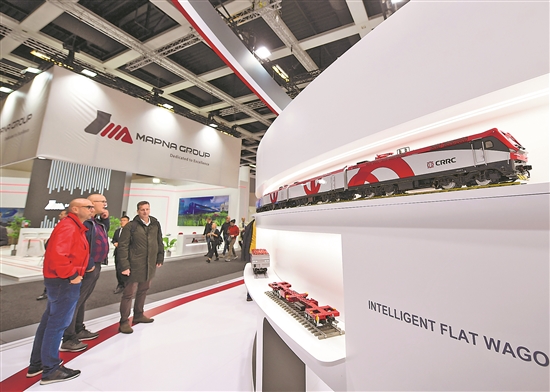 9月20日,人们在德国柏林轨道交通展中国中车展区参观。