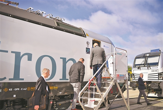 9月20日,在德国柏林轨道交通展上,人们登上展出的列车参观。新华社记者 任鹏飞 摄