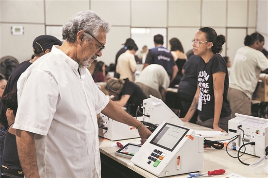 9月21日,在巴西里约热内卢,工作人员参与大选电子投票箱的密封工作。