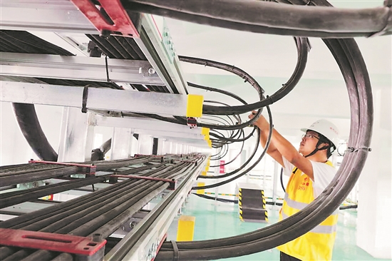 9月16日,中国铁建电气化局三公司京滨城际铁路项目部技术人员在北辰站10kv配电所检查电源电缆。在施工中,他们采用双层铝合金架将电源电缆和信号电缆分隔敷设,工效提高了3倍,还便于运营后的维护管理。郑传海 姜丽丽 摄