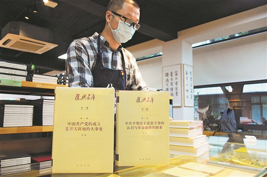 当日,《复兴文库》大型历史文献丛书正式上架。《复兴文库》以中华民族伟大复兴为主题,以思想史为基本线索,精选1840年鸦片战争以来同中华民族伟大复兴相关的重要文献,全景式记述了以中国共产党人为代表的中华优秀儿女为实现国家富强、民族振兴、人民幸福而不懈求索、百折不挠的历史足迹。新华社记者 潘旭 摄