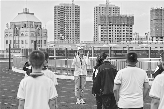 9月20日,齐河县第六小学学生在空中运动场上体育课。这所地处闹市的学校将地下停车、地上教学、运动场地分层穿插布局巧妙融合,节地率达到54%。