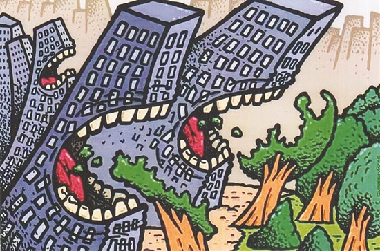 城市建筑无限延伸,使得人类生存环境日渐窘迫。正如欧洲谚语:看似是繁荣景象,实为毁损家园的恶魔。