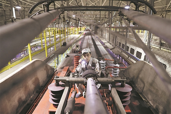 中国铁路太原局集团公司太原车辆段在国庆期间组织专人对上线运行的动车组进行全面平推检查和维修保养,保证动车组安全状态达标,确保旅客平安出行。张炯 摄