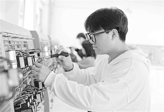 10月9日,在安徽铜陵信息工程技工学校教室,学生们在进行低压电工实践操作。该校致力于应用型人才的培养,不断深化产教融合、校企合作,开发精品课程,强化学生技能训练,为不同禀赋和兴趣的学生创造多样化的成才之路。梅建广 摄/人民图片