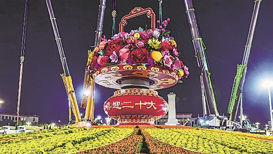 国庆节期间,天安门广场的“祝福祖国”巨型花篮及长安街沿线14组立体花坛精彩亮相,引得游人纷纷驻足观看拍照。数十米高的庞大花篮伫立在城市之中,与城市景观融为一体,相得益彰。在这些园艺景观的背后,倾注了园林设计师闫洪飞的无数心血和巧思。(本报记者 吴凡 刘金梦 本报实习生 闫宇辰 王芊艺)