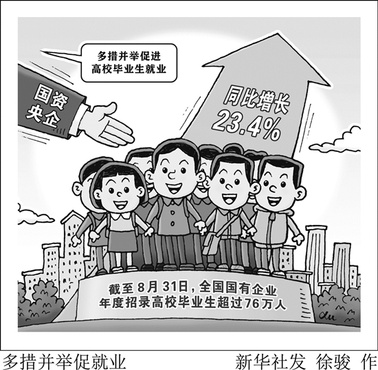 今年以来,国资央企多措并举促进高校毕业生就业,招录2022届高校毕业生工作取得明显成效。截至8月31日,全国国有企业年度招录高校毕业生超过76万人,同比增长23.4%。其中,中央企业招录高校毕业生人数同比增长23.9%。