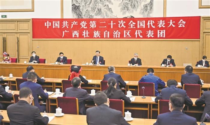 10月17日,习近平同志参加党的二十大广西代表团讨论。新华社记者 谢环驰 摄