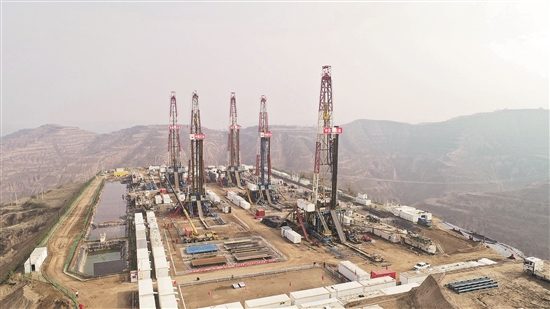 亚洲陆上最大页岩油水平井平台华H100平台建设现场。