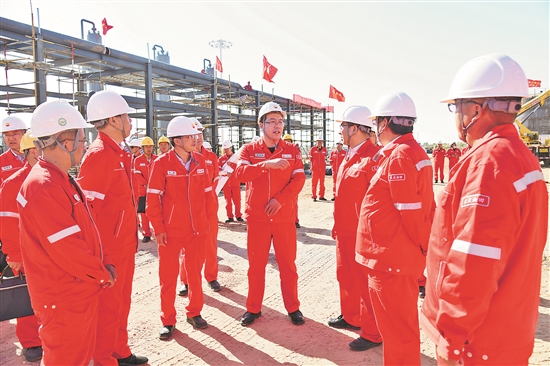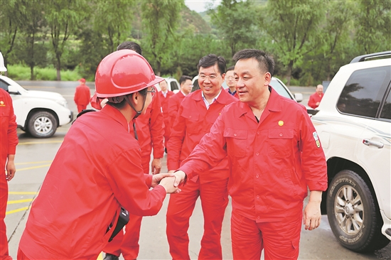 长庆油田公司党委书记、执行董事何江川(右一)慰问基层员工。