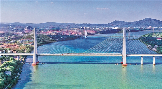 滔滔赣江上,京九高铁南昌至赣州段修建的赣江特大桥横跨两岸。这座长2156米、国内首座时速350公里的高速铁路大跨度斜拉桥以“水深、桩长、塔高、大跨”被业内誉为“千里赣江第一桥”。根据技术参数,工程技术人员通过全自动张拉设备变人工操作为智能自动控制,提升张拉精度和可靠性,确保桥梁质量安全万无一失;同时采用全国领先的无导梁运架一体机架设,提高架梁效率,为该项目创国优工程奠定良好基础。