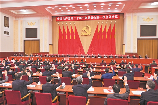 10月23日,中国共产党第二十届中央委员会第一次全体会议在北京人民大会堂举行。