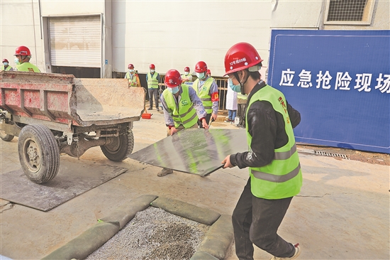 10月14日,中铁七局北京地铁12号线09标安华桥车站2号施工场地,北京市轨道交通建设管理有限公司第四项目管理中心、北京市城市道路养护管理中心、中铁七局北京地铁12号线09标项目部三方联合开展路面塌陷应急演练活动。
