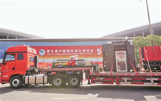 当日,7家进博会参展企业的8件展品运抵国家会展中心(上海),成为第五届进博会首批进馆展品。新华社记者 方喆 摄