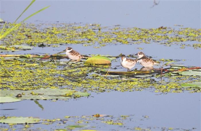 图为野生鸟类在生态环境优美的微山湖栖息。