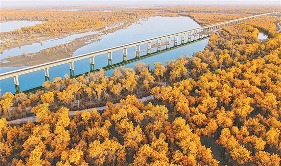 深秋时节,新疆塔里木河流域胡杨林披上“金装”,与碧水、大漠相互映衬,构成一幅秀美的生态画卷。新疆沿塔里木河流域分布着约1500万亩胡杨林,是世界面积最大的胡杨林区。