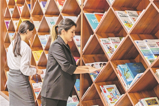 11月2日,读者在乌兹别克斯坦塔什干的阿里舍尔·纳沃伊国家图书馆的“中国之窗”阅览厅翻阅图书。阿里舍尔·纳沃伊国家图书馆2日正式对公众开放馆内新设的“中国之窗”阅览厅。