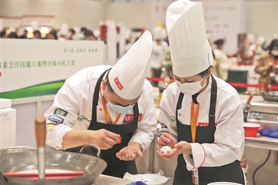 当日,2022第五届世界川菜大会在四川雅安开幕,本届大会以“让世界爱上川菜”为大会主题,突出“品川菜、喝雅茶、看熊猫”活动主题,川菜领域专家学者以及国内美食行家、川菜品牌企业代表等齐聚一堂,共话川菜产业创新发展。大会期间将开展川菜烹饪技能大赛、川味小吃大赛、火锅宴大赛等活动,大厨们现场制作菜品,评委现场品鉴打分,同行互相切磋学习,参观食客们一饱口福,共享川菜盛宴。新华社记者 刘琼 摄