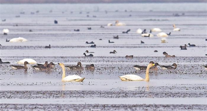 近年来,安徽省合肥市庐江县在原渔业湖区黄陂湖水域及周边,开展退耕、退渔政策以及水环境综合治理,生态修复成果明显,原先的老渔场变成美丽天鹅湖。新华社记者 郭晨 摄
