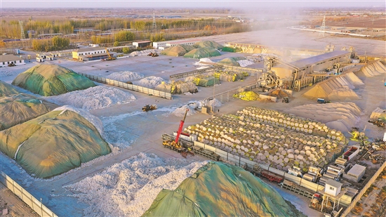 新疆沙雅县一处棉花收购企业在进行生产。