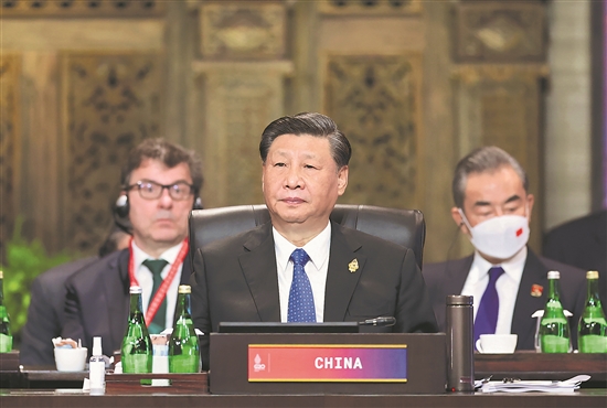 当地时间11月15日,二十国集团领导人第十七次峰会在印度尼西亚巴厘岛举行。国家主席习近平出席并发表题为《共迎时代挑战 共建美好未来》的重要讲话。