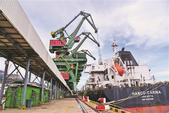 作为共建“一带一路”倡议落地印尼的重点项目之一,经过9年发展,中国青山控股集团(青山)在印尼的两个园区落户了越来越多中资企业,对印尼当地发展贡献也越来越大。图为近日在印尼北马鲁古省拍摄的青山纬达贝园区港口。