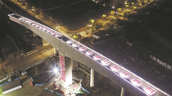 据了解,目前,潍烟高铁桥梁下部结构、现浇连续梁、现浇简支梁均已完成,正在加快推进架梁和铺轨施工。此次两座转体桥梁的成功实施,为全线有砟轨道施工提供了条件,为全线按期通车奠定了坚实基础。图为潍烟左线跨青烟直通线特大桥2-100mT构在转体过程中。