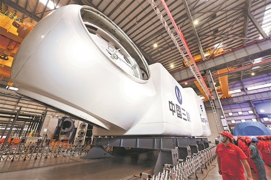 这是11月23日在福建三峡海上风电国际产业园下线的16兆瓦海上风电机组。