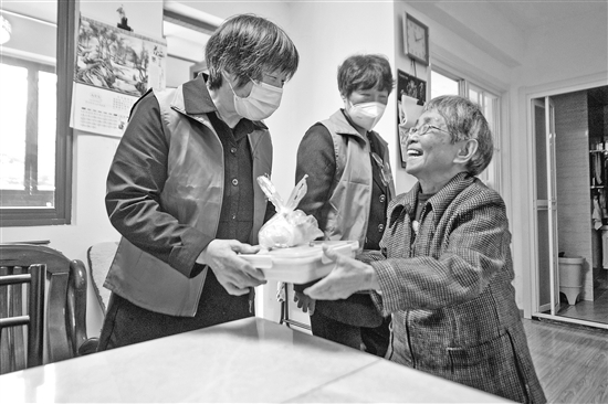 11月23日,志愿者为行动不便的老年人提供爱心送餐服务。