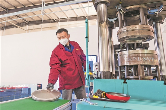 11月27日,在西藏拉萨市一家工厂内,工人在高原地区多功能烹饪炊具生产线上工作。