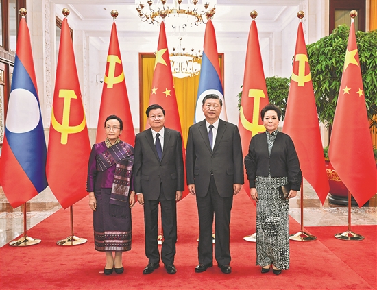 新华社北京11月30日电 11月30日,中共中央总书记、国家主席习近平在人民大会堂同老挝人民革命党中央总书记、国家主席通伦举行会谈。双方强调,要秉持“长期稳定、睦邻友好、彼此信赖、全面合作”方针和“好邻居、好朋友、好同志、好伙伴”精神,政治上互尊互信、经济上互惠互利、人文上相知相亲,不断深化中老命运共同体建设,为推动构建人类命运共同体作出积极努力和贡献。